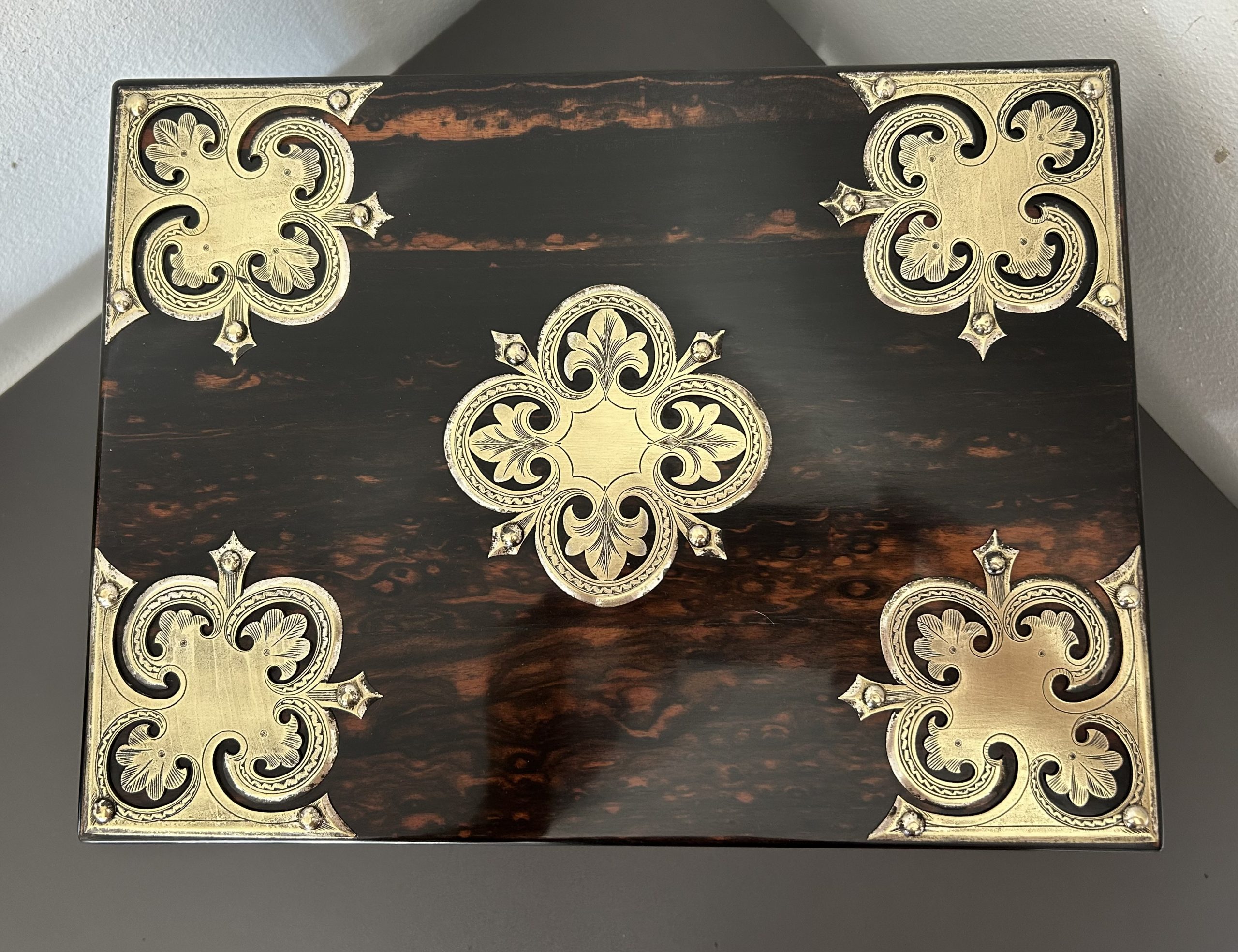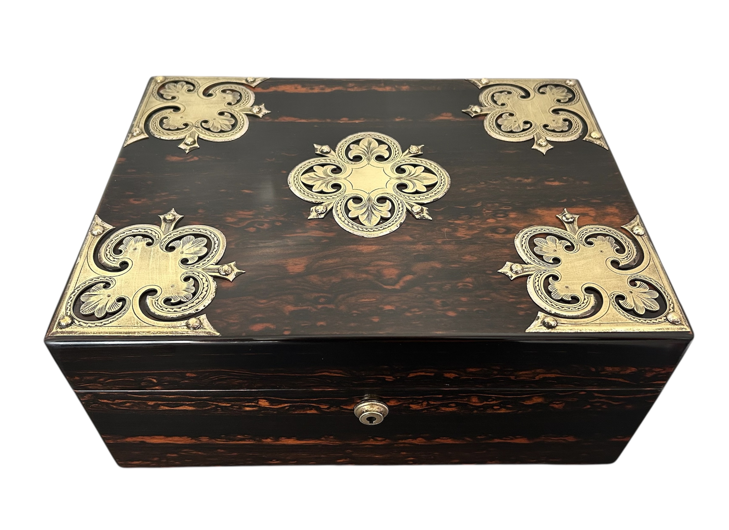 A stunning example of a Victorian jewellery box in a beautiful piece of Coromandel dating back to c.1860.