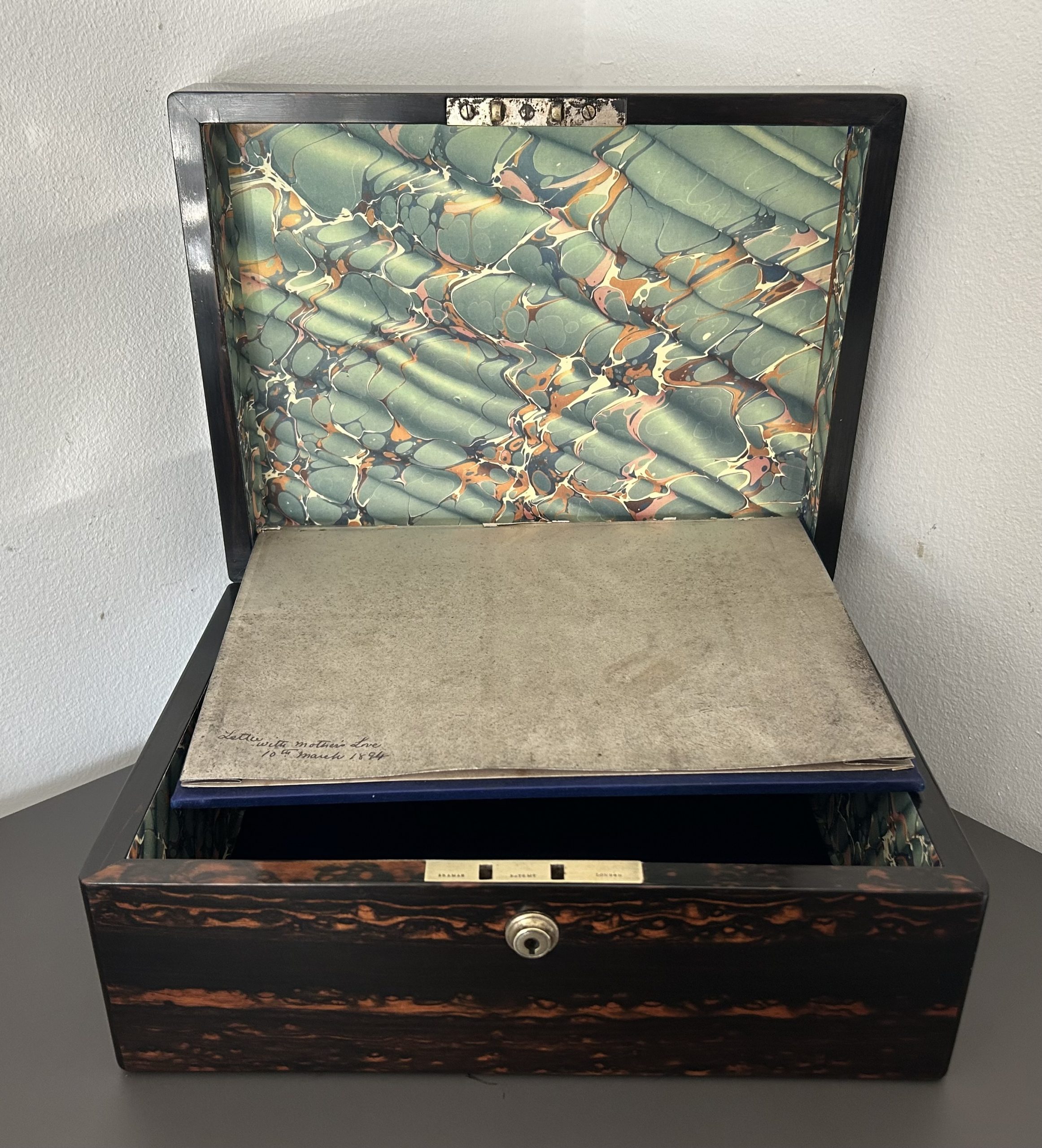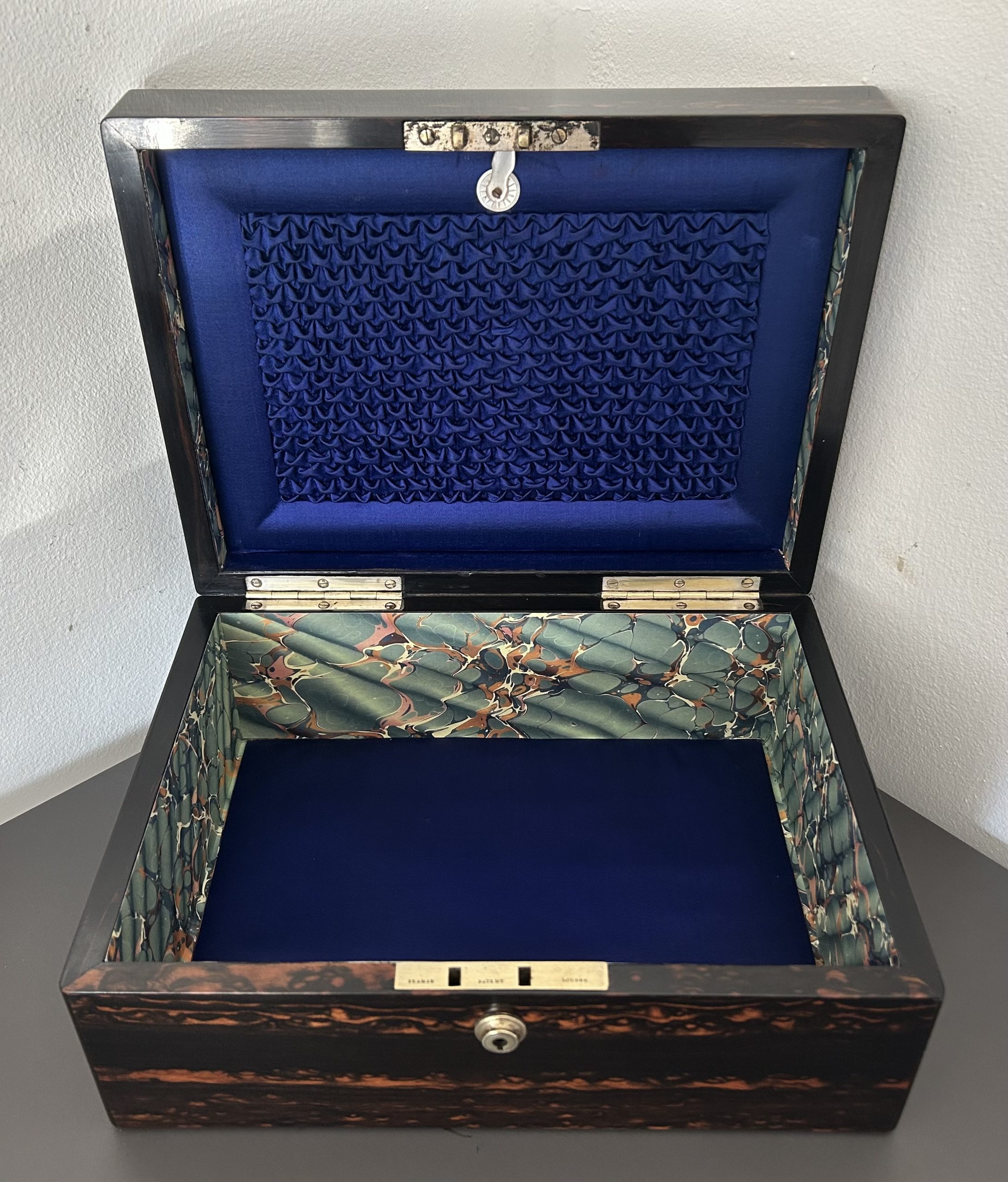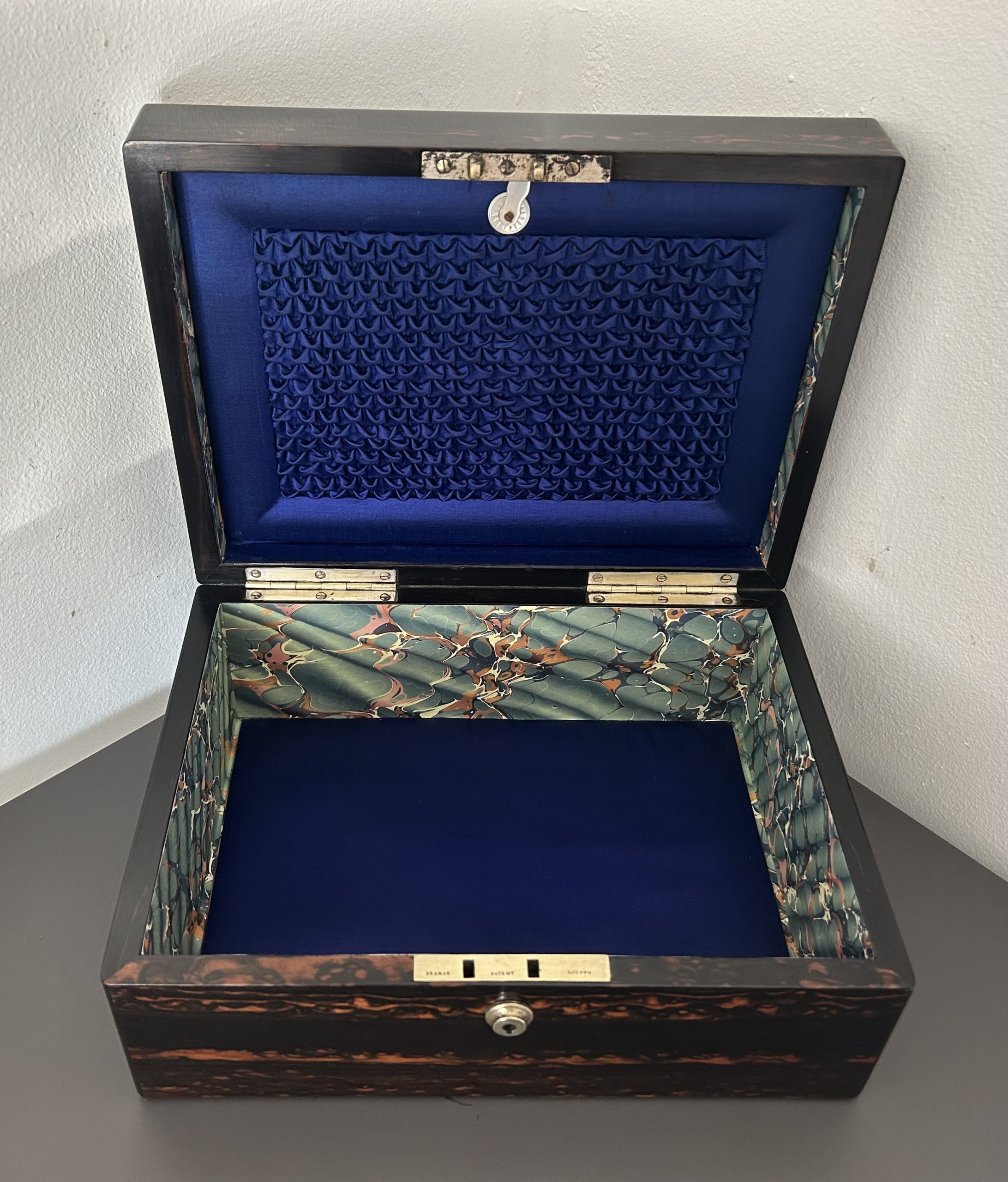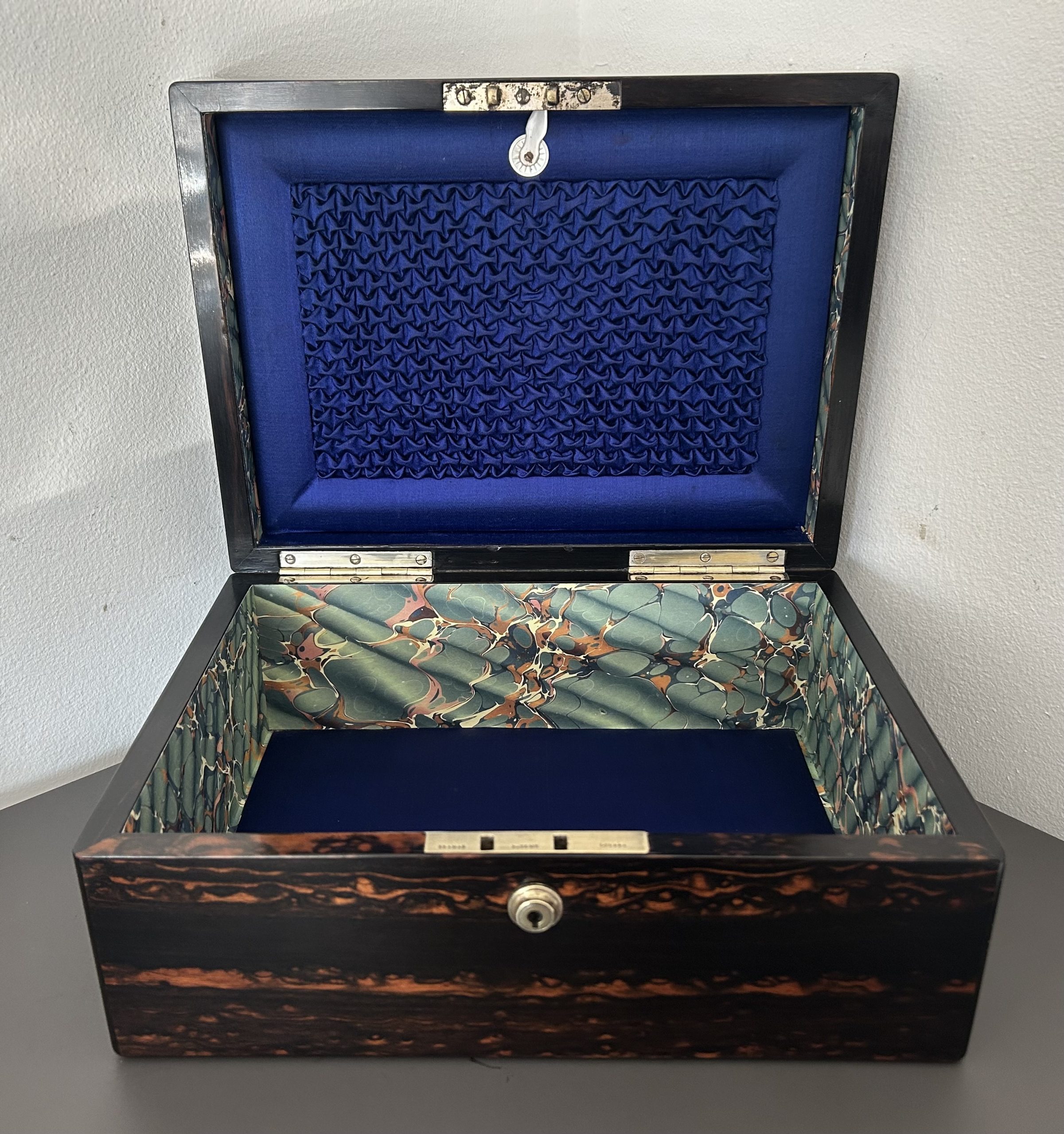 A stunning exmaple of a Victorian jewellery box in a beautiful piece of Coromandel dating back to c.1860.