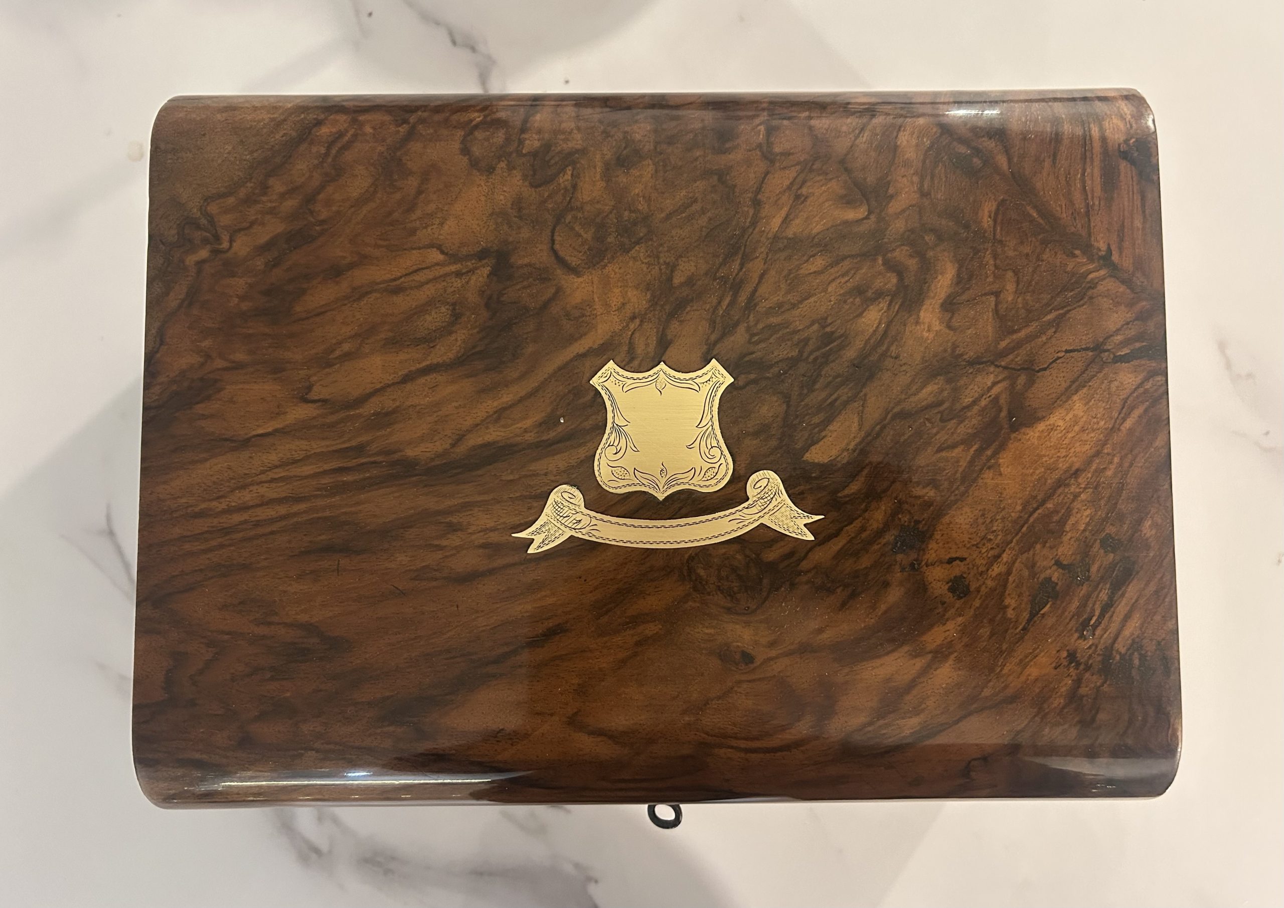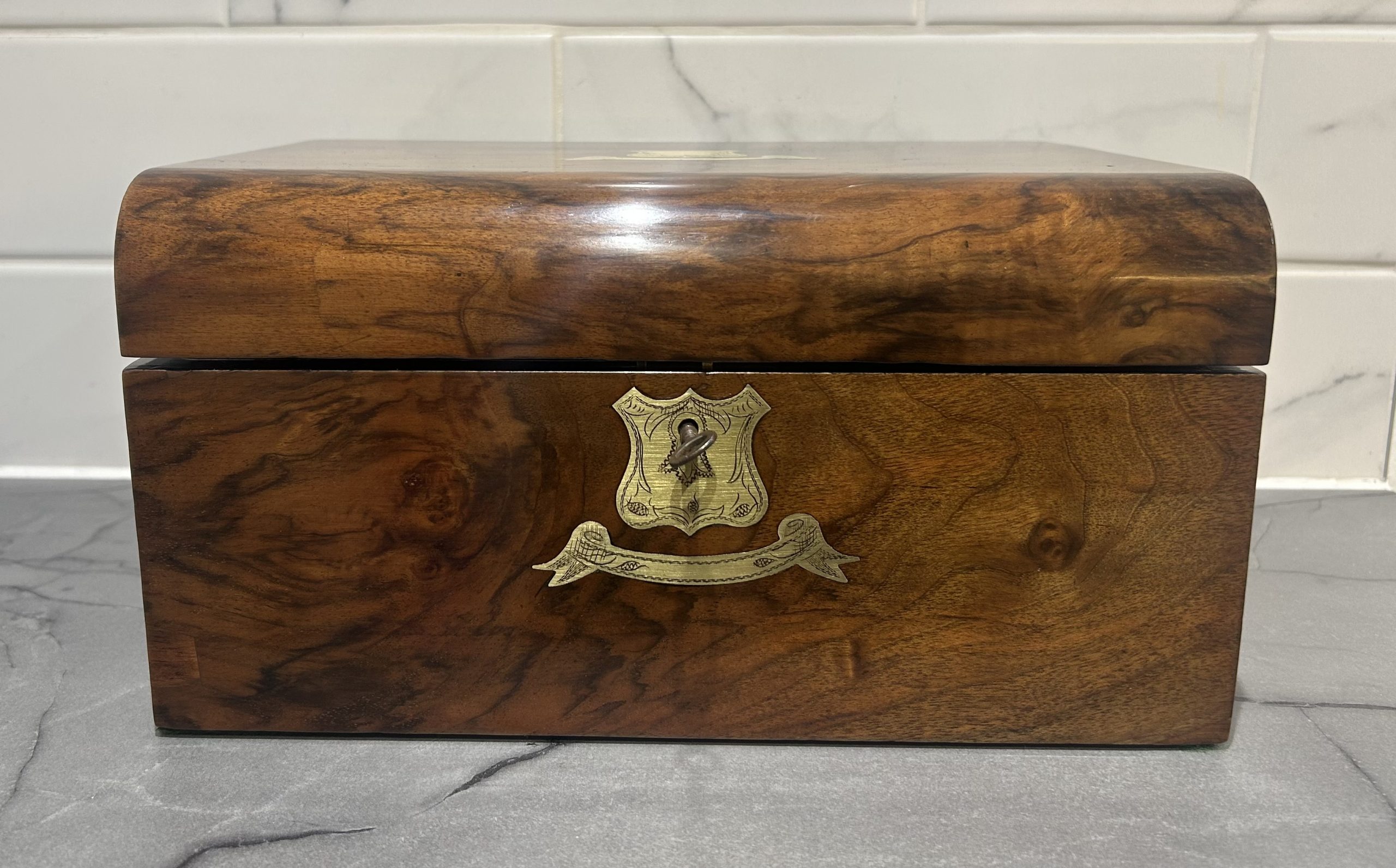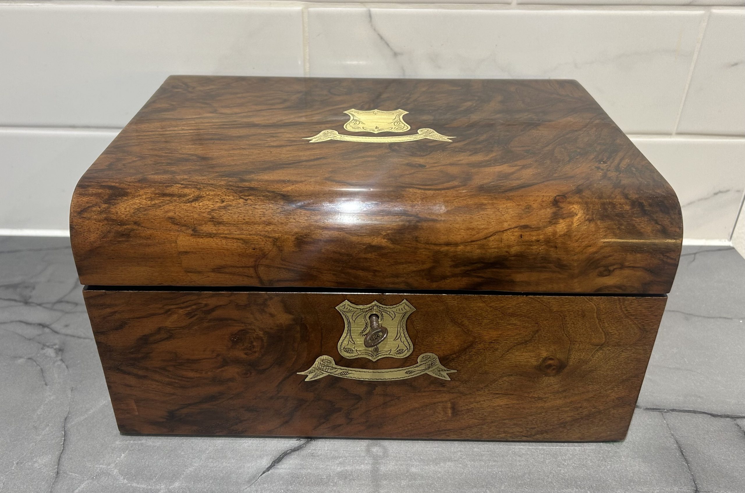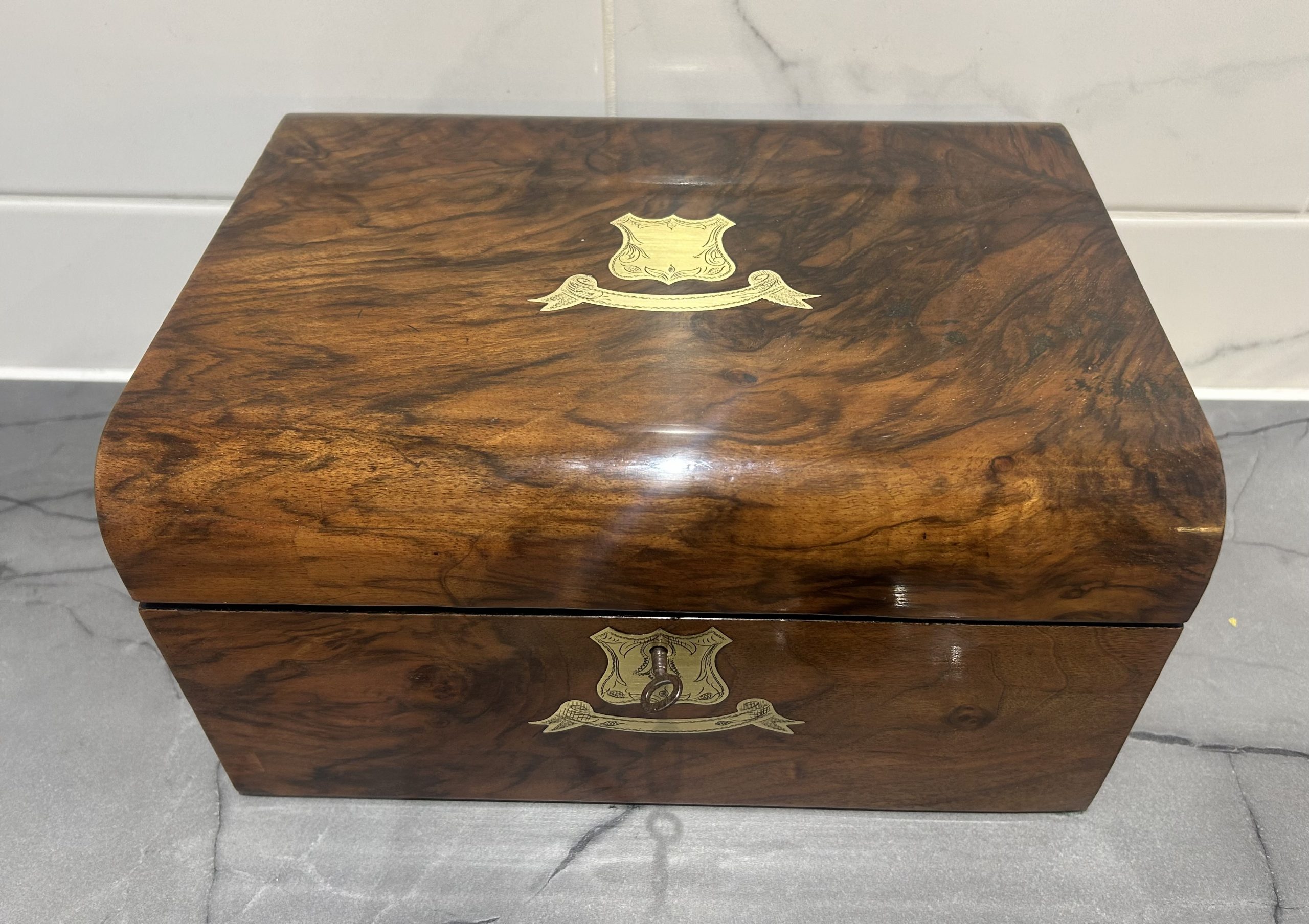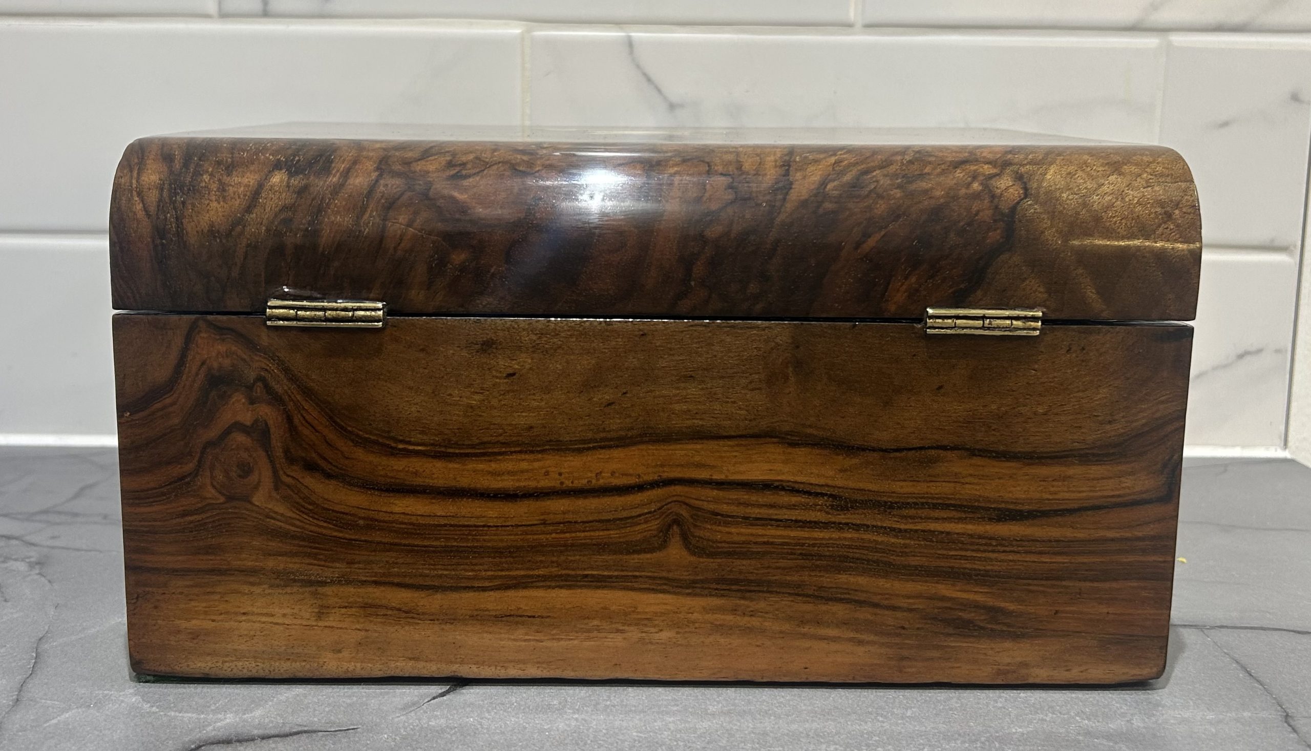 A beautiful example of a dome top figured Walnut Jewellery Box dating back to c.1860.
