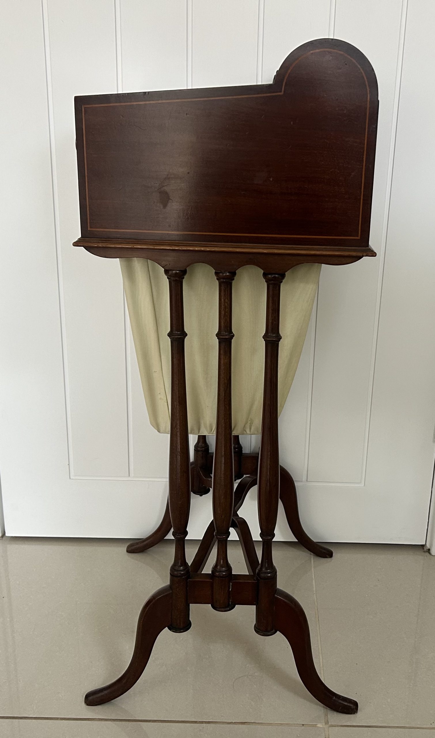A superb Victorian Mahogany Writing and Sewing box On a stand dating back to c.1880. The box is edged in boxwood and satinwood.