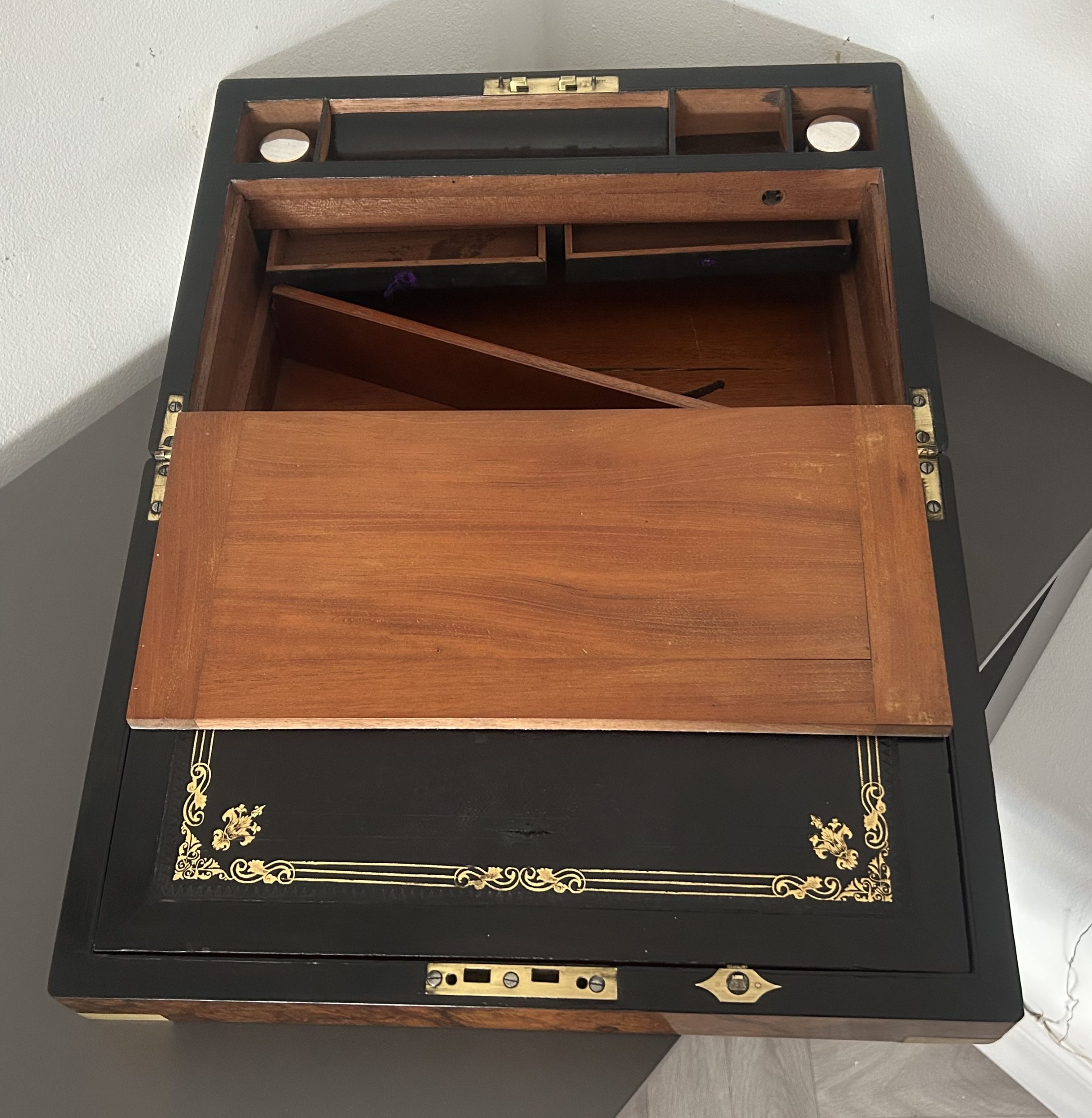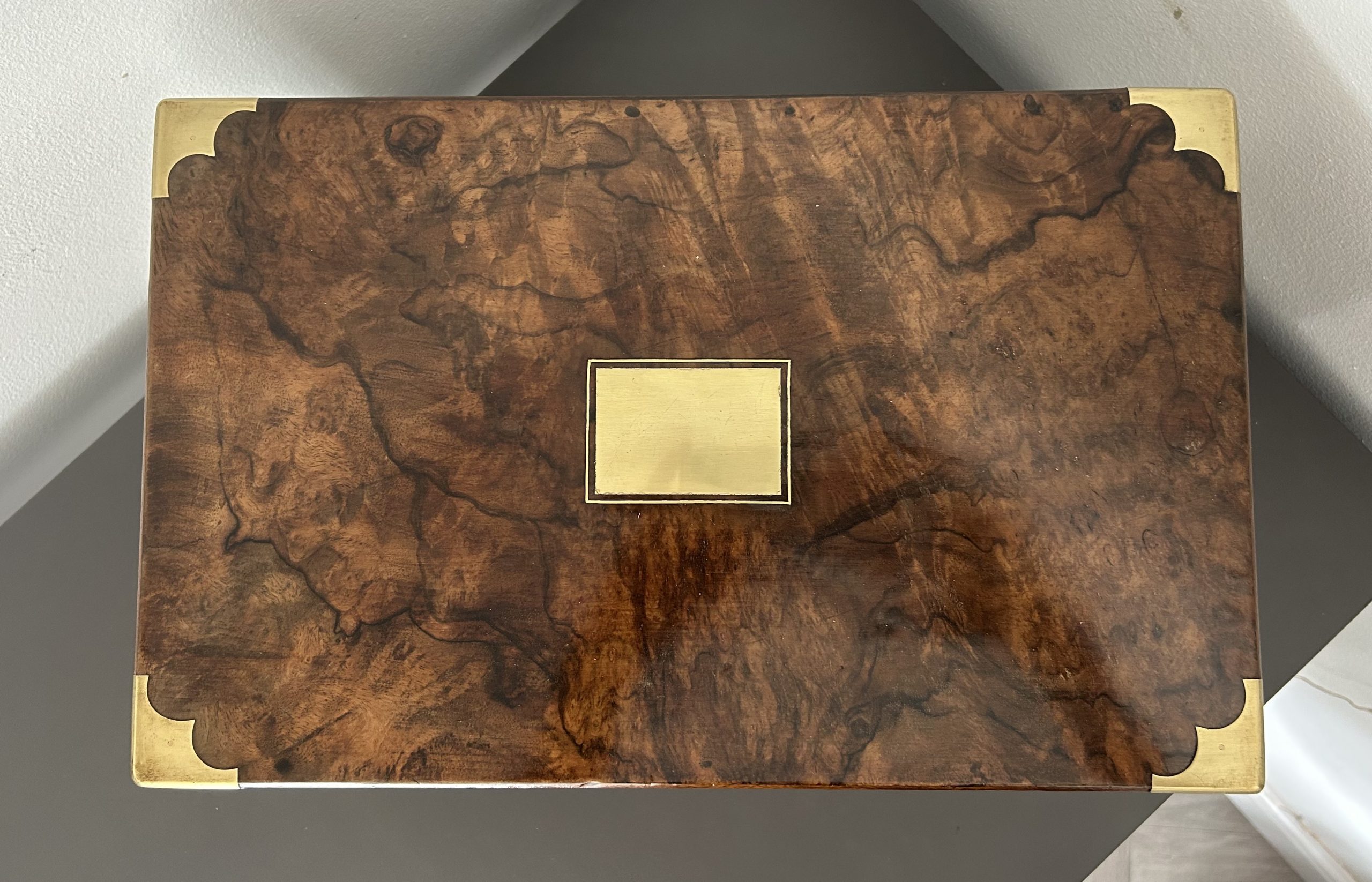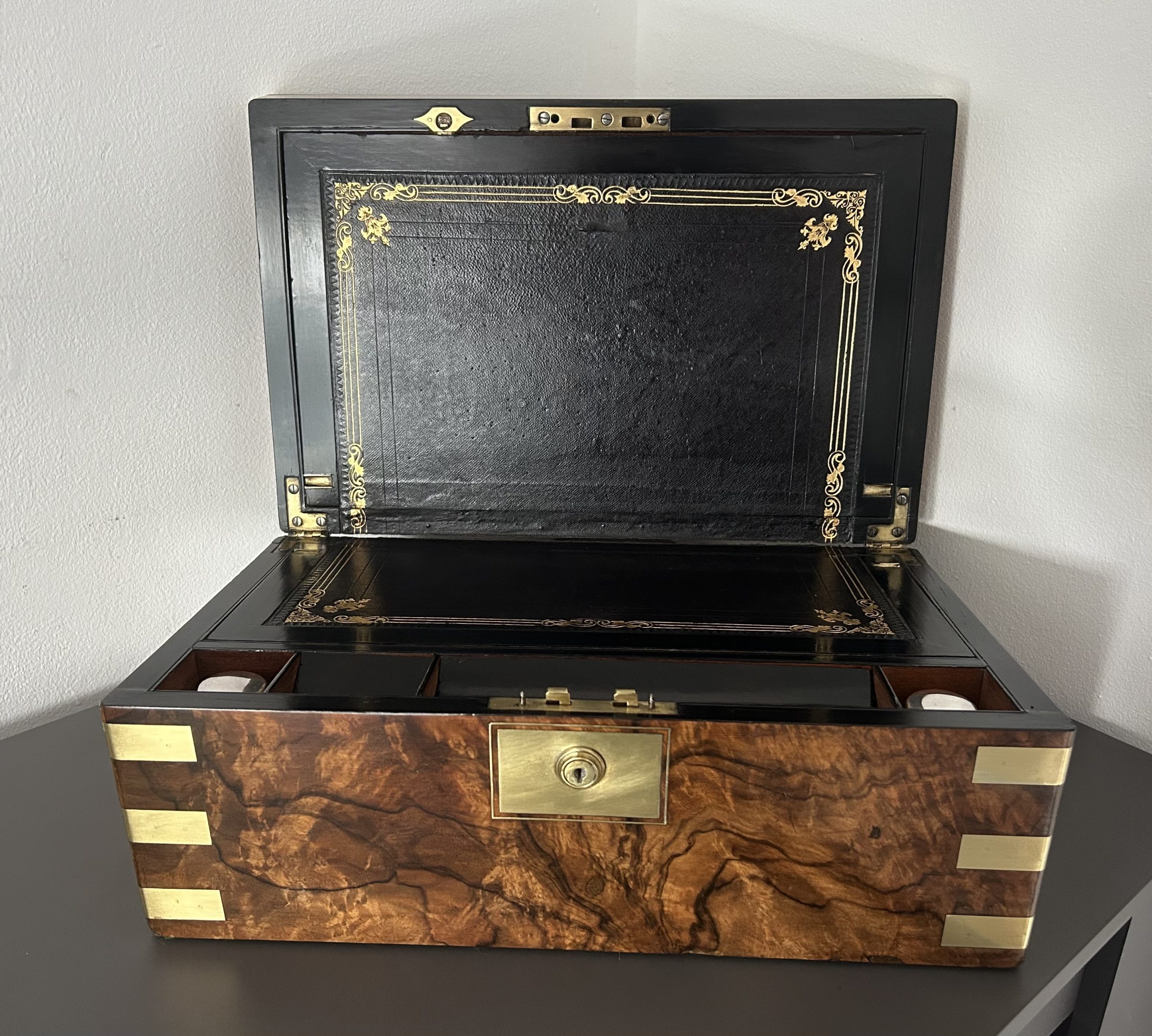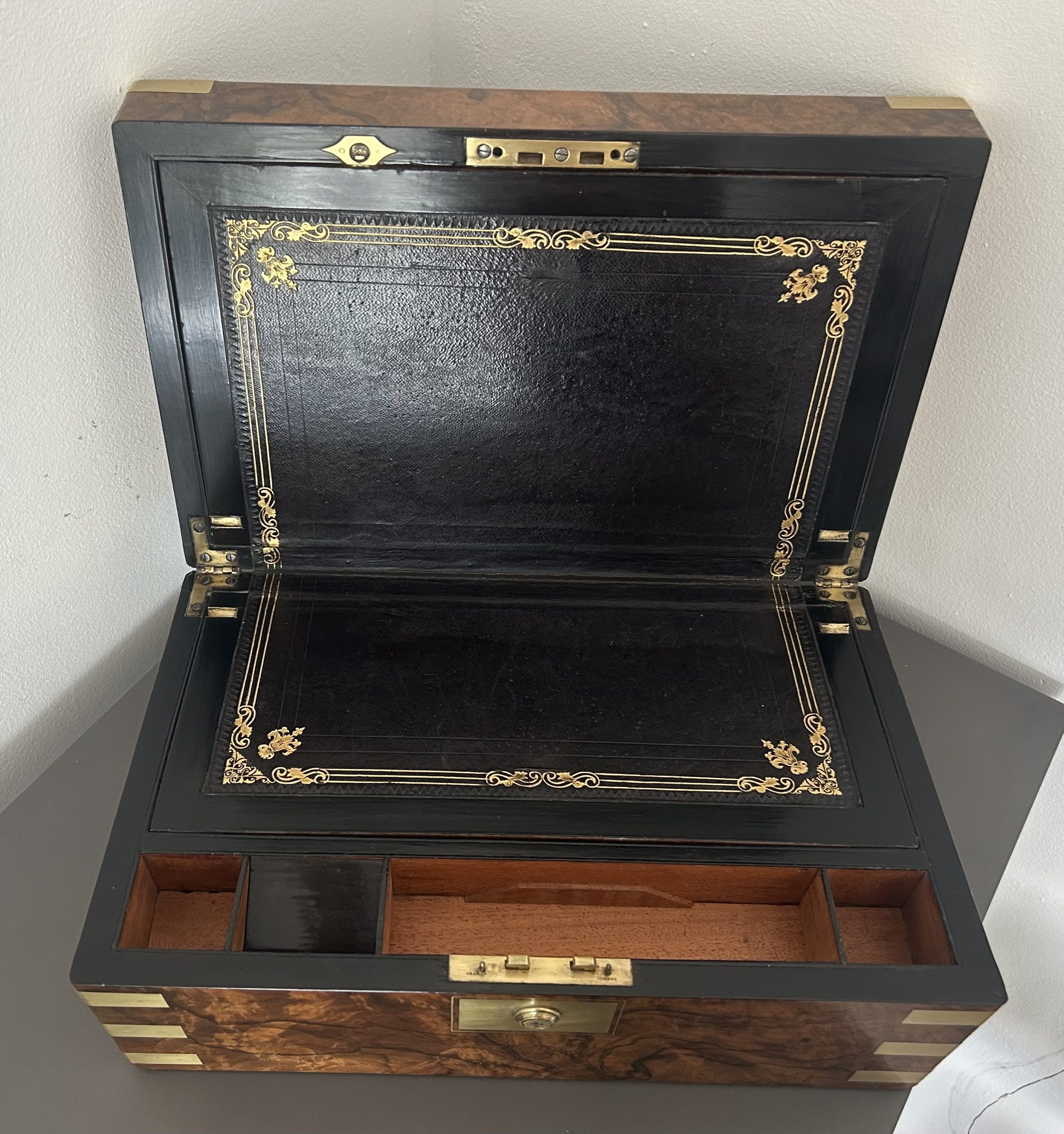 Victorian Walnut Brassbound Writing slope, with secret drawers.