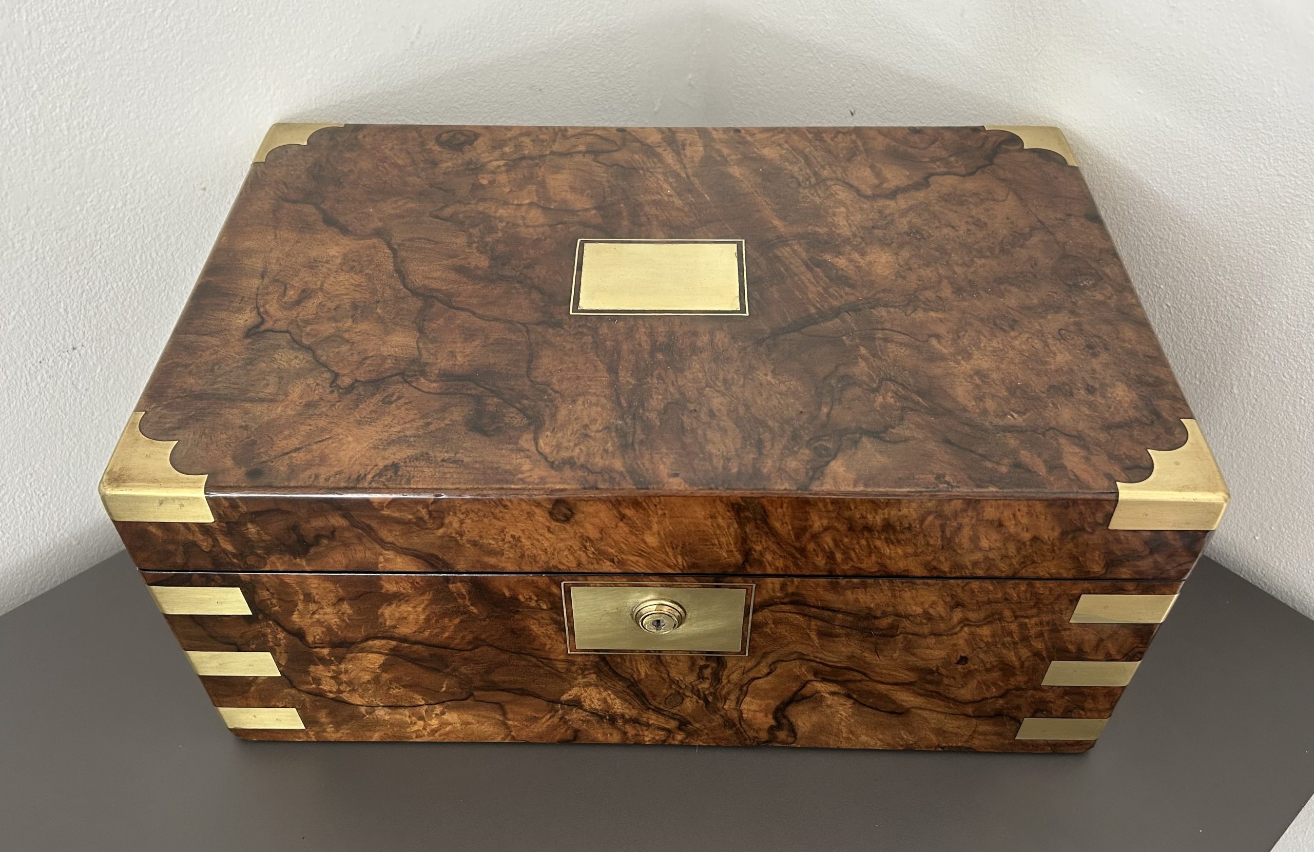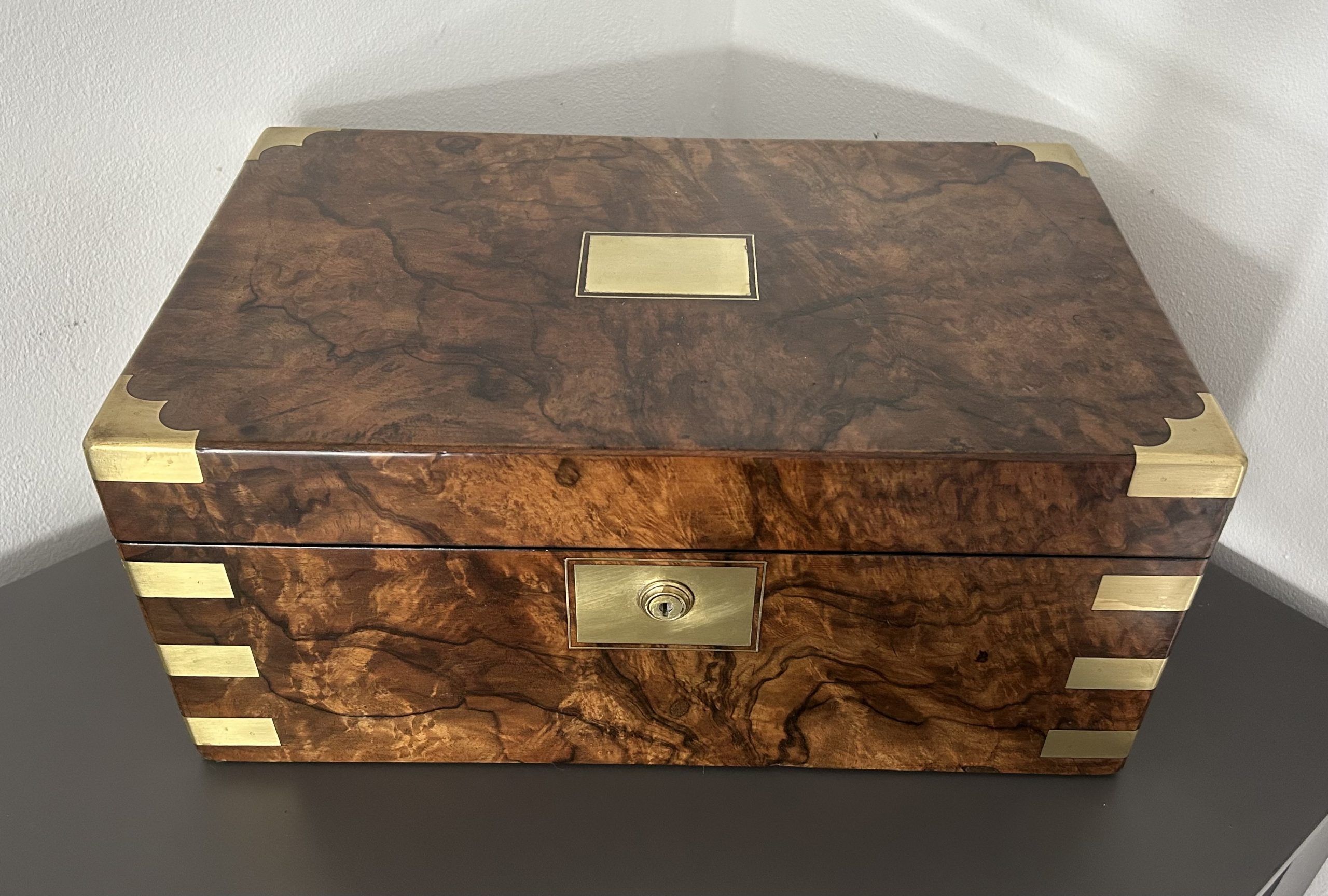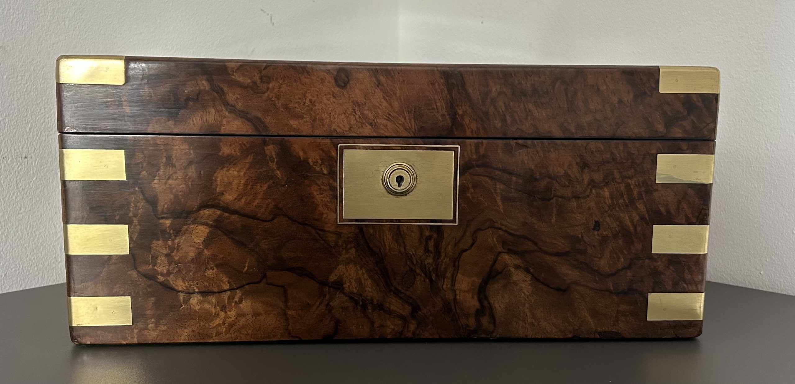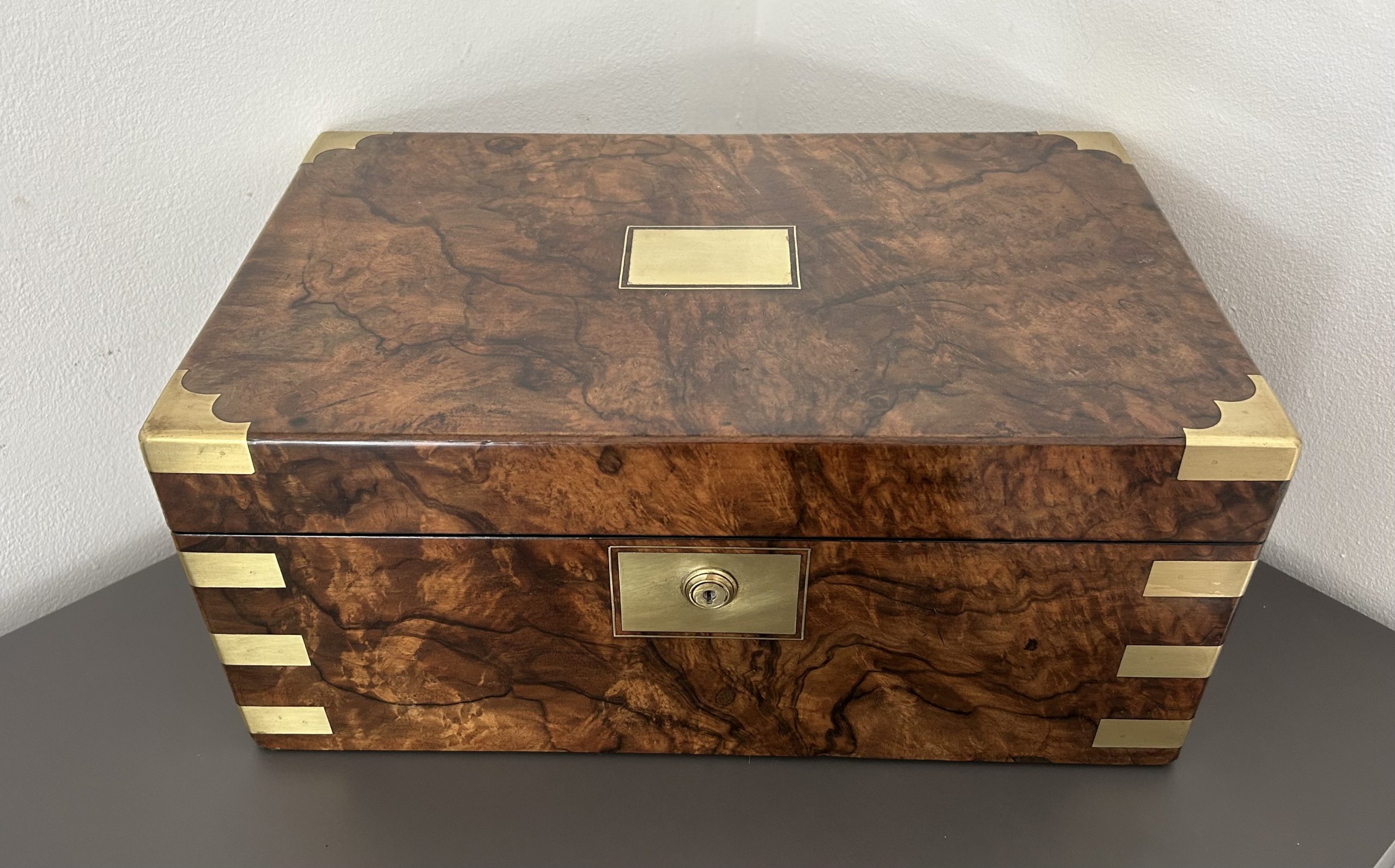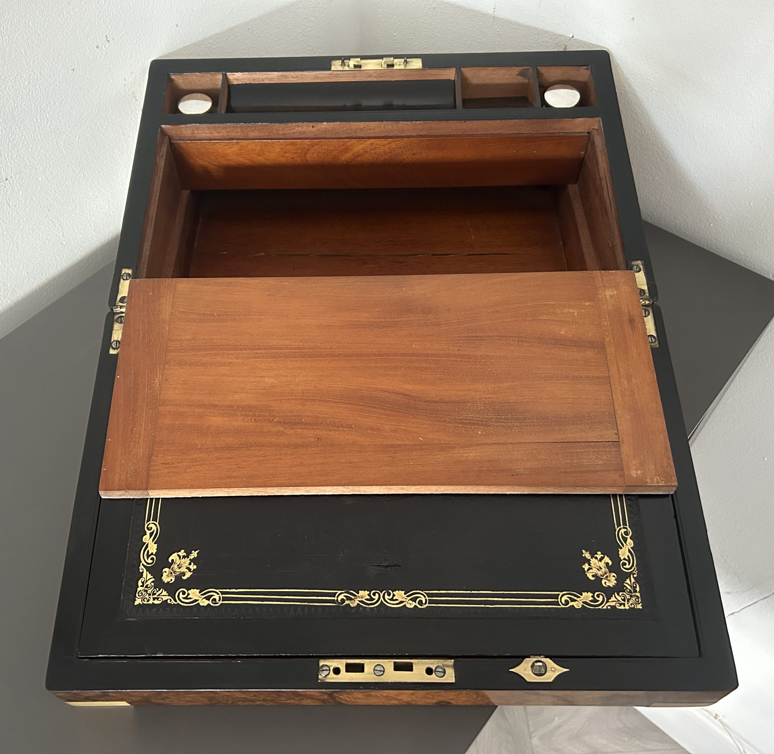 Victorian Walnut Brassbound Writing slope, with secret drawers.