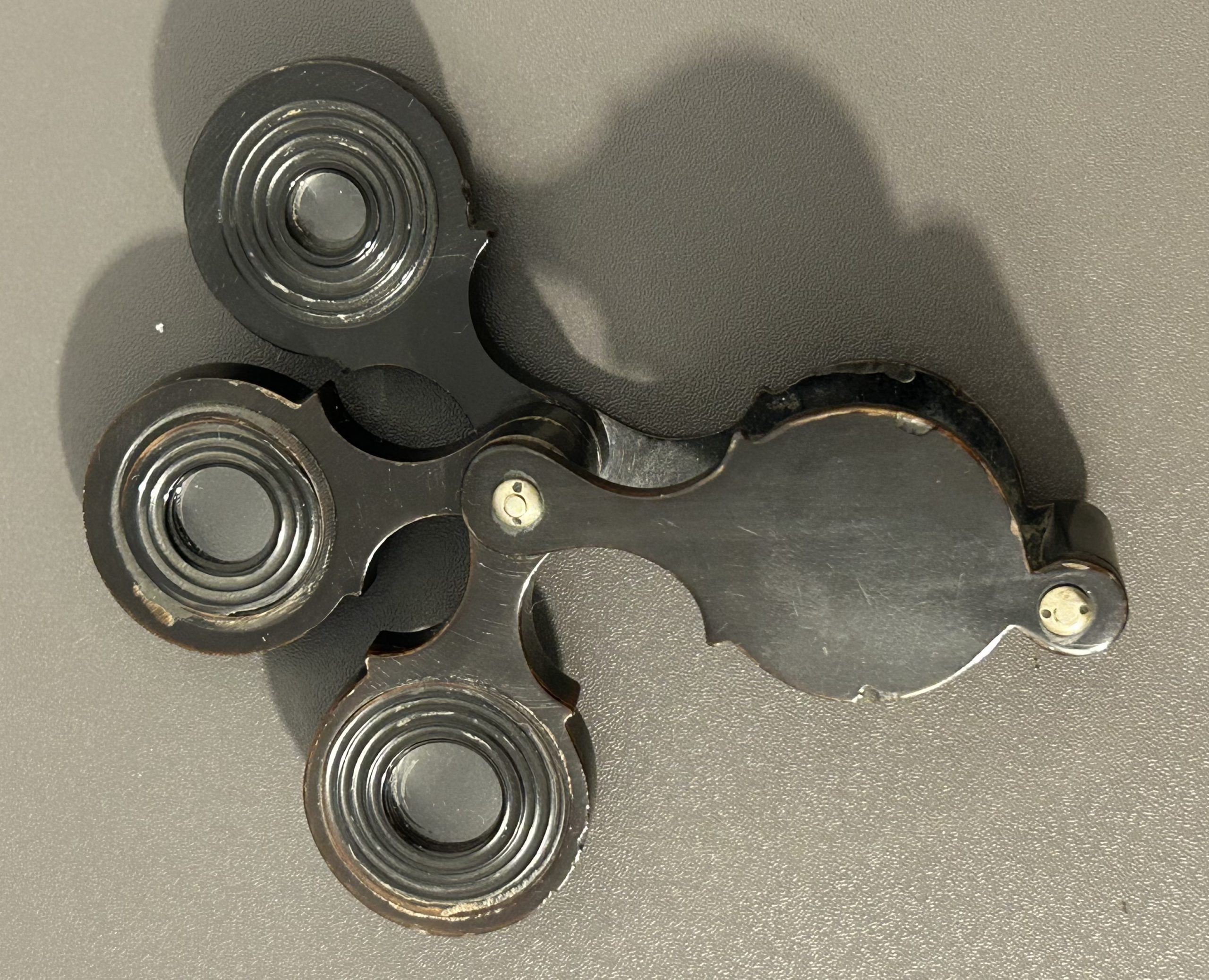 A superb example of a Georgian Ebony triple eye glass dating back to c.1830. Measuring 7×4 and stands 3cm high