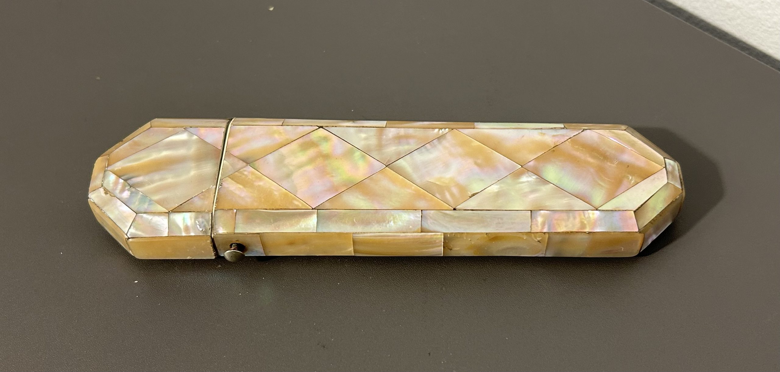 A superb example of a Victorian Mother Of Pearl glasses case dating back to c.1860.